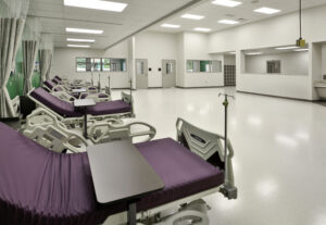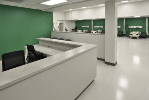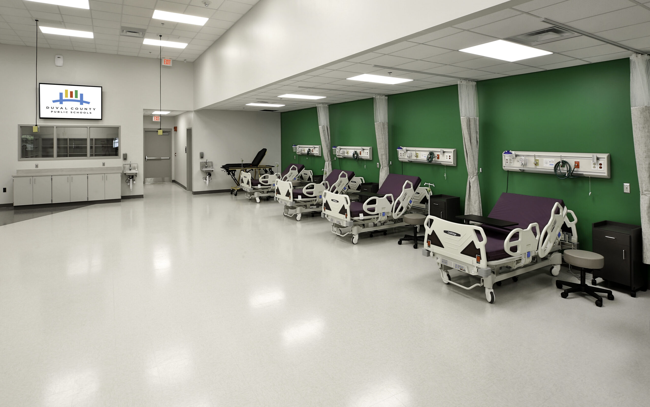 The addition project scope included a large medical simulation lab with dummy headwalls and Anatomage tables.