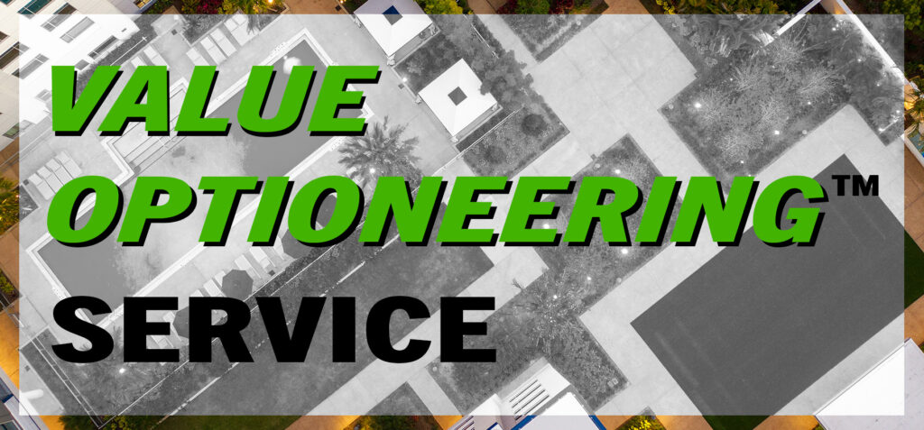 - VALUE OPTIONEERING™ SERVICES – if, despite our efforts, the design strays from the budget, we pride ourselves in providing budget saving alternatives that still meet your expectations. We will work tirelessly to suggest alternative materials, products, manufacturers, systems, techniques and approaches until the design and budget align. We believe there’s always a better way to build a building and we seek out those better ways for the good of your project.